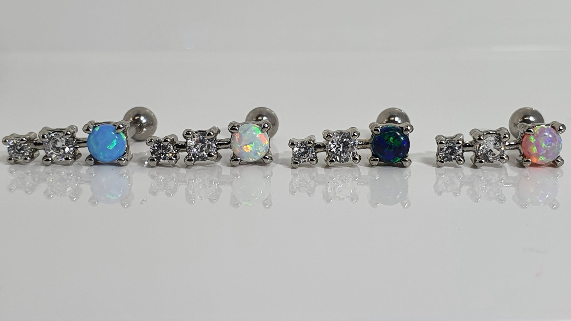 3 Drop Opal Helix Bar 1.2mm(16g) x 6mm with ball backing