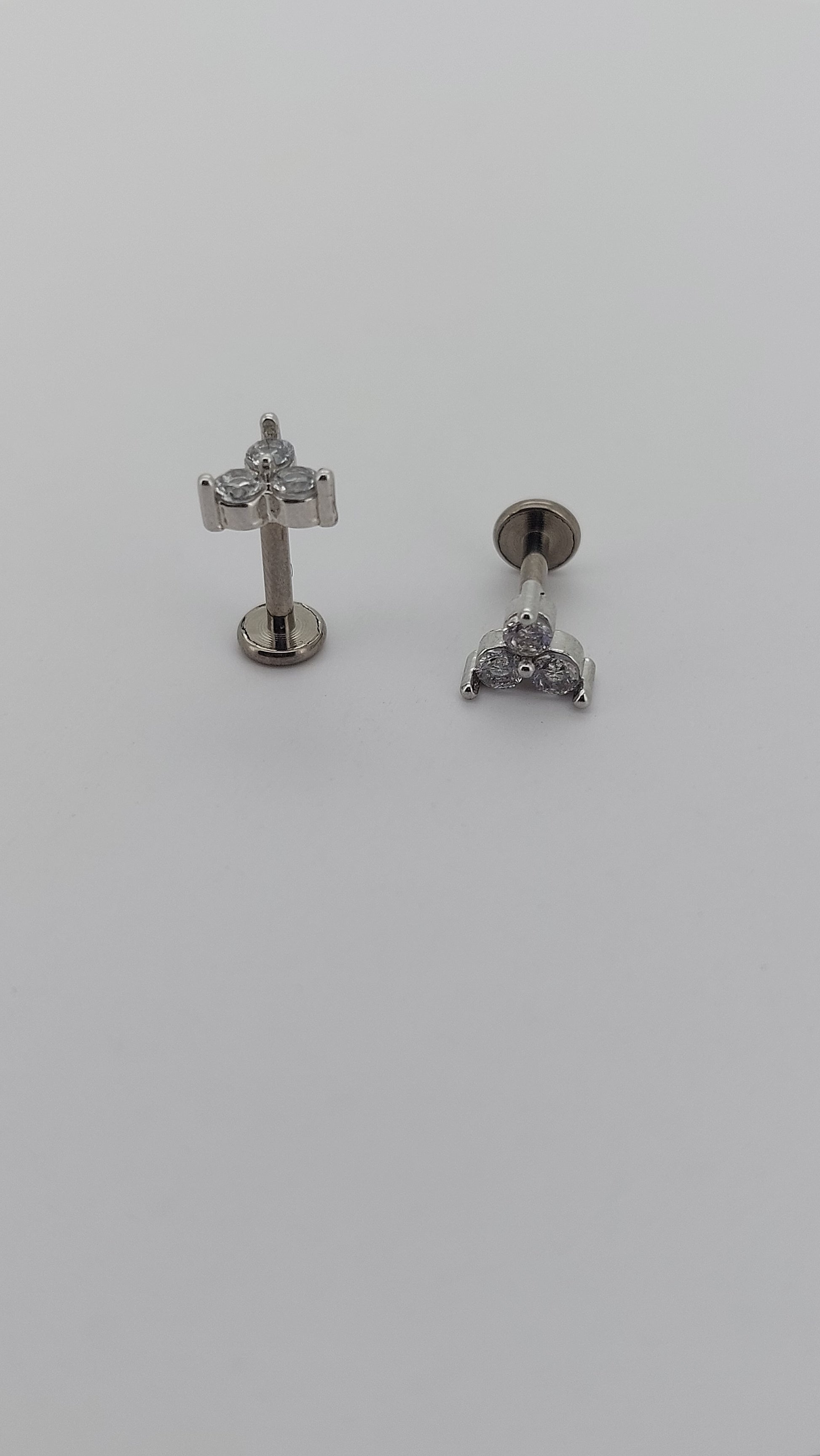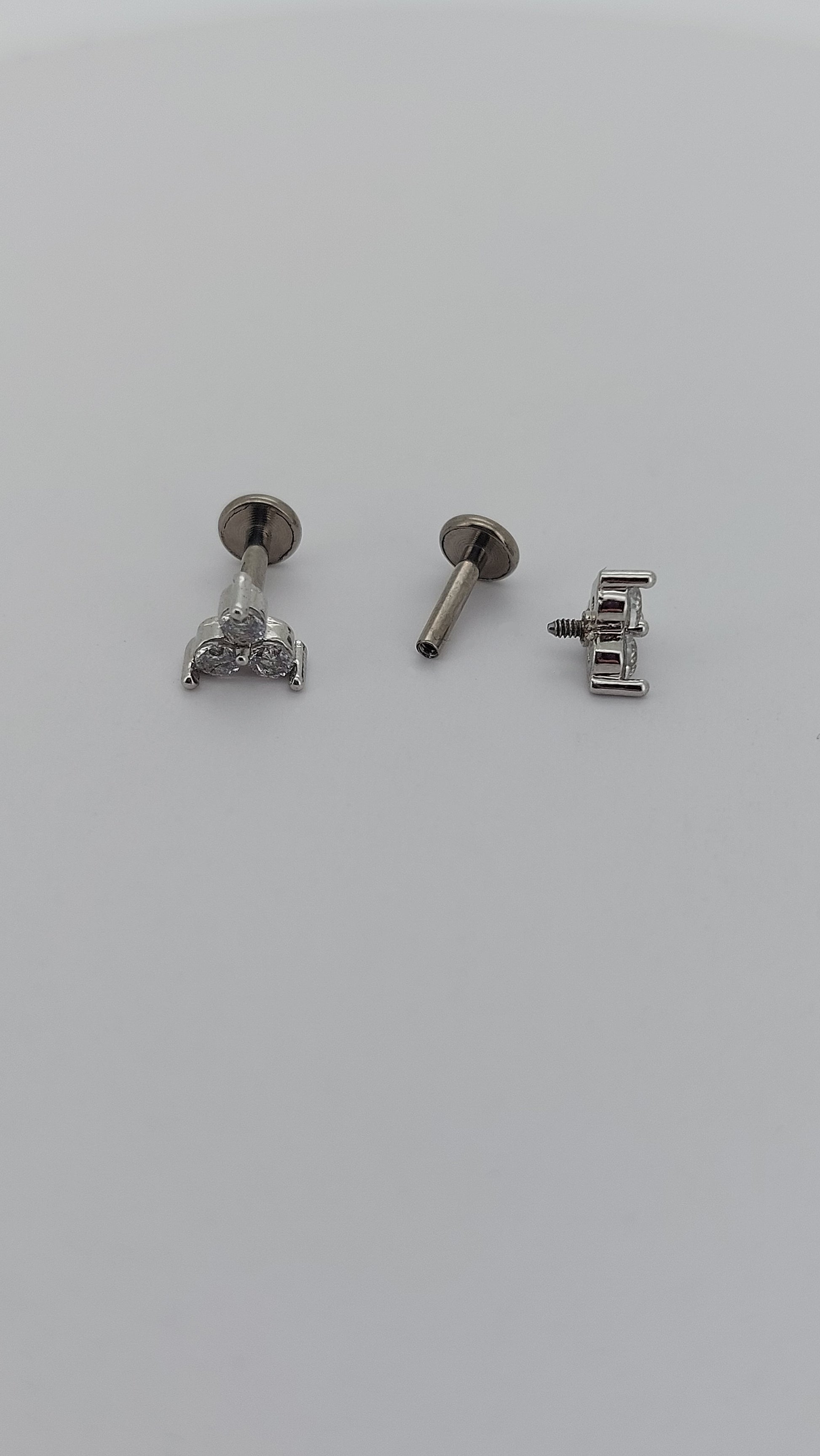 Ideal for cartilage piercings, this 1.2mm (16g) titanium labret stud features a tri-jewel design and internal threading. Specifically crafted for a secure and comfortable wear, it adds a touch of elegance to any cartilage piercing.