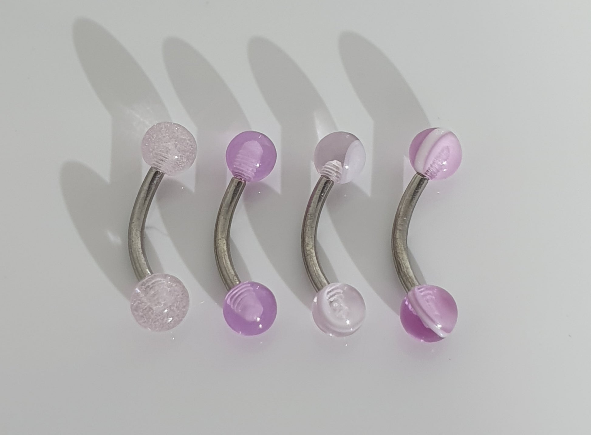 Great for eyebrow and ear cartilage piercings. Also good for tongue web & lip frenulum (smiley/frowny) piercings as acrylic balls reduce damage to teeth and gums.