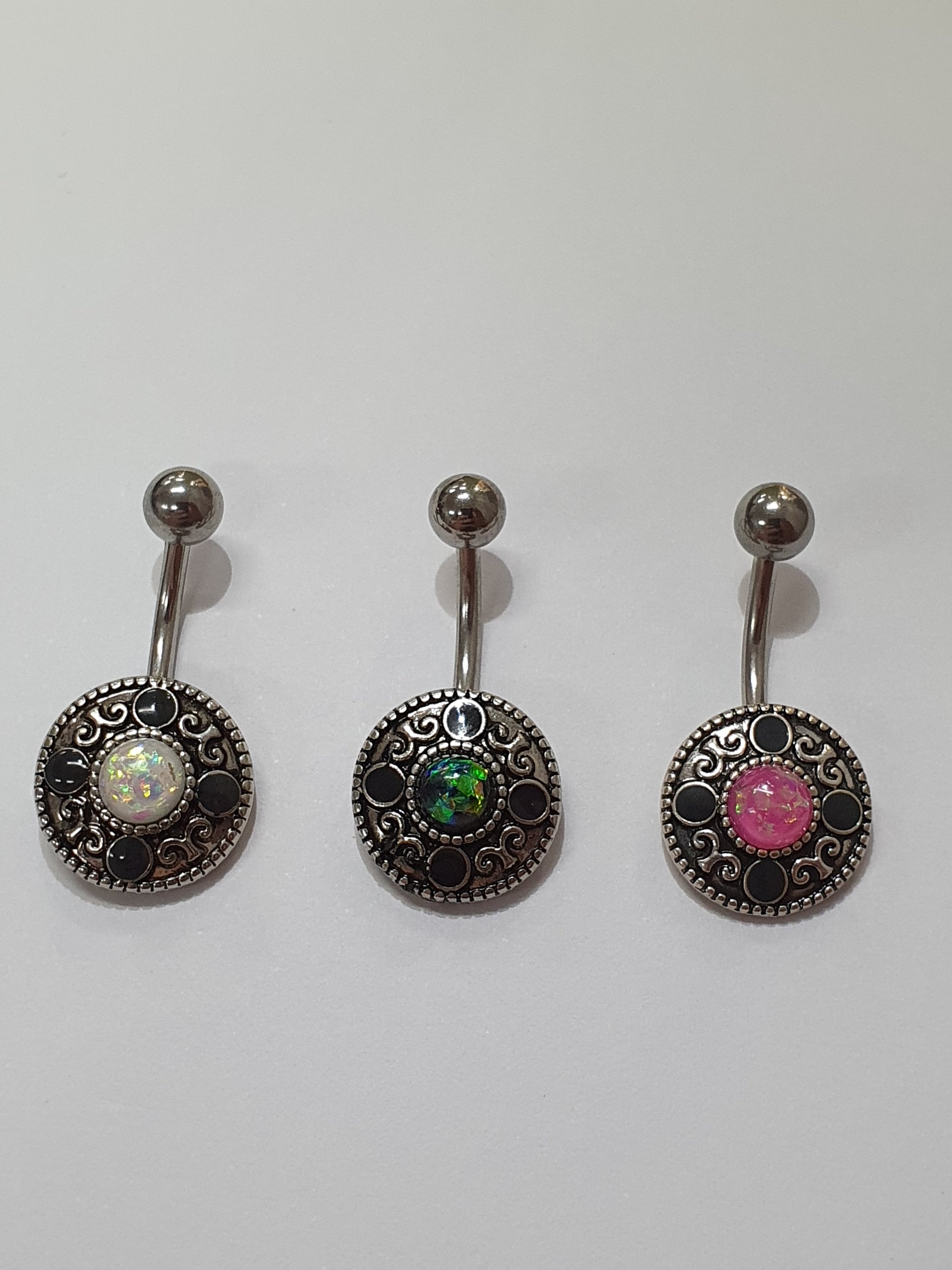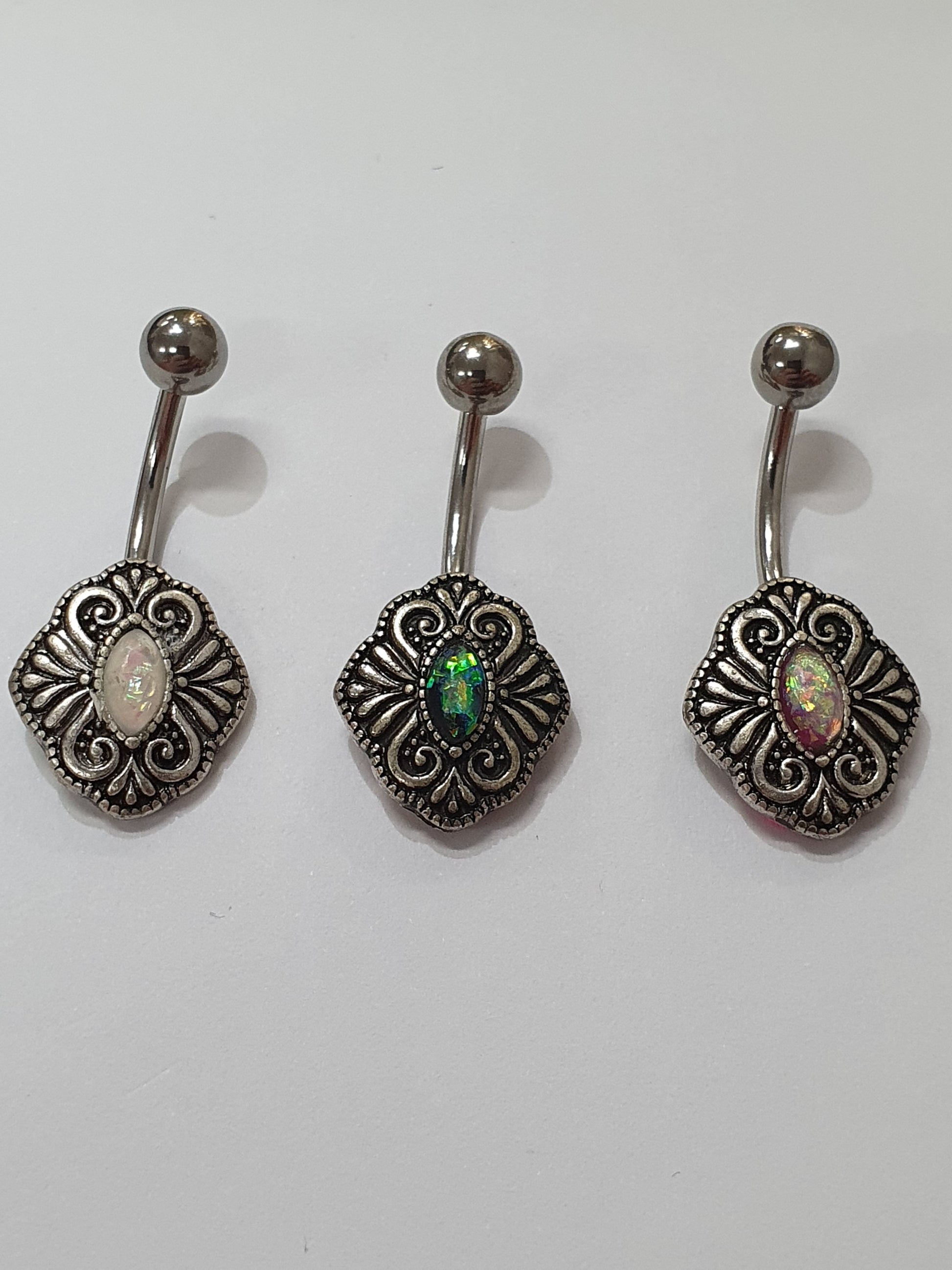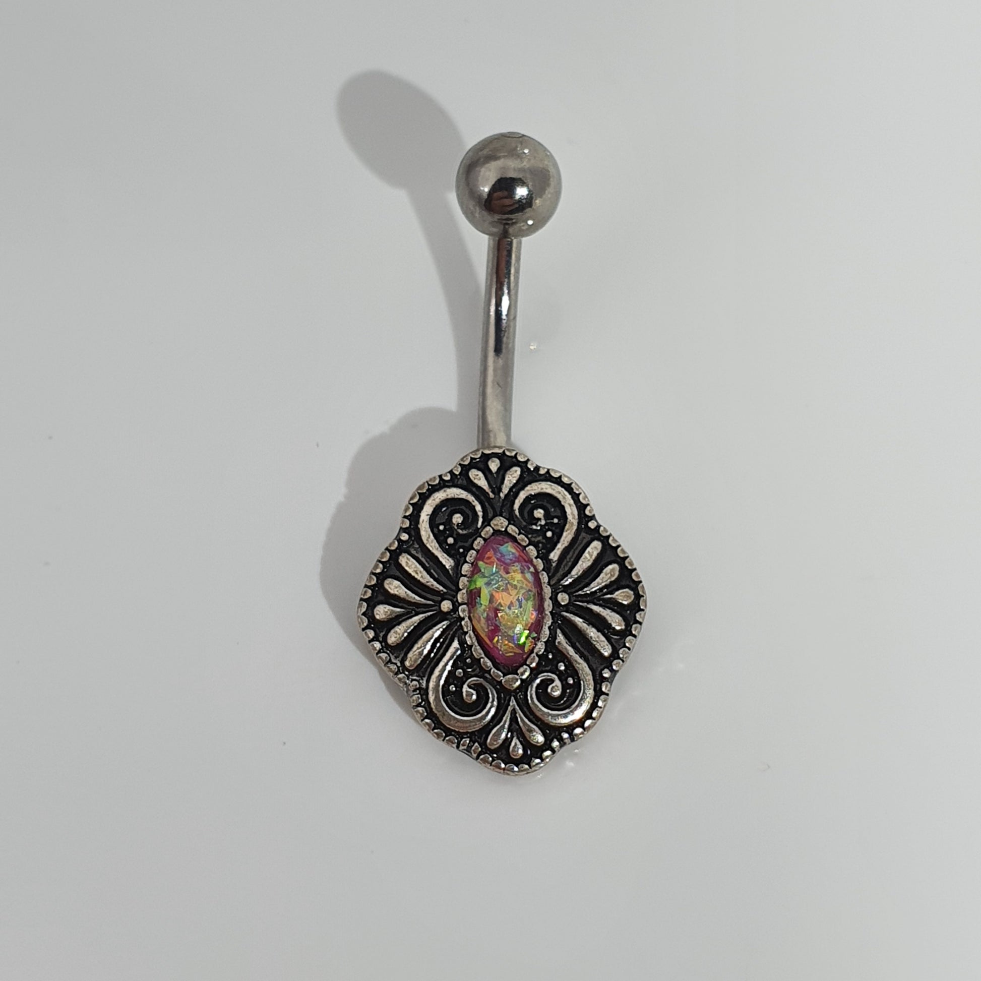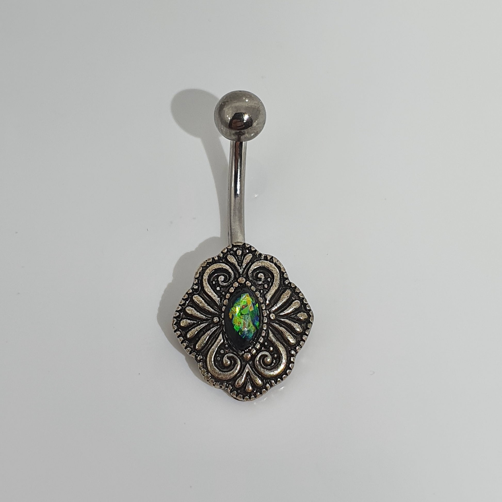 Aztec Style Jewelled Navel Bar 1.6mm(14g) x 10mm