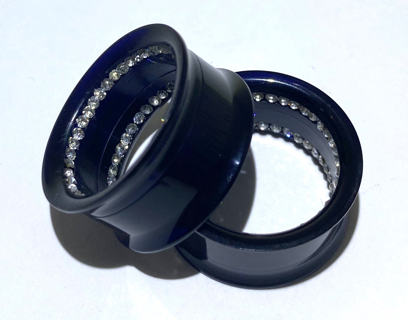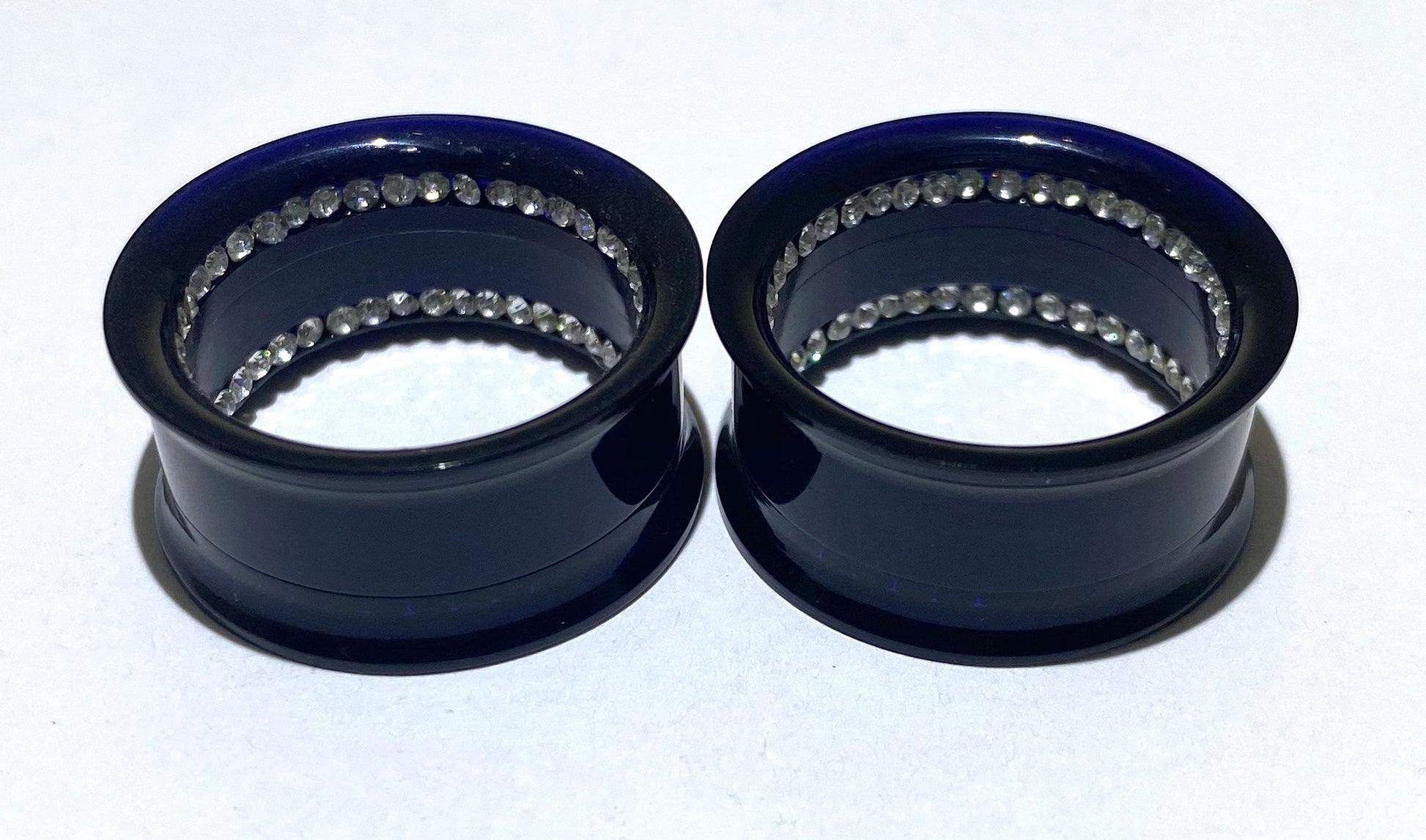 Black Acrylic Tunnel with Two Rows of Diamante Inlay (Threaded)