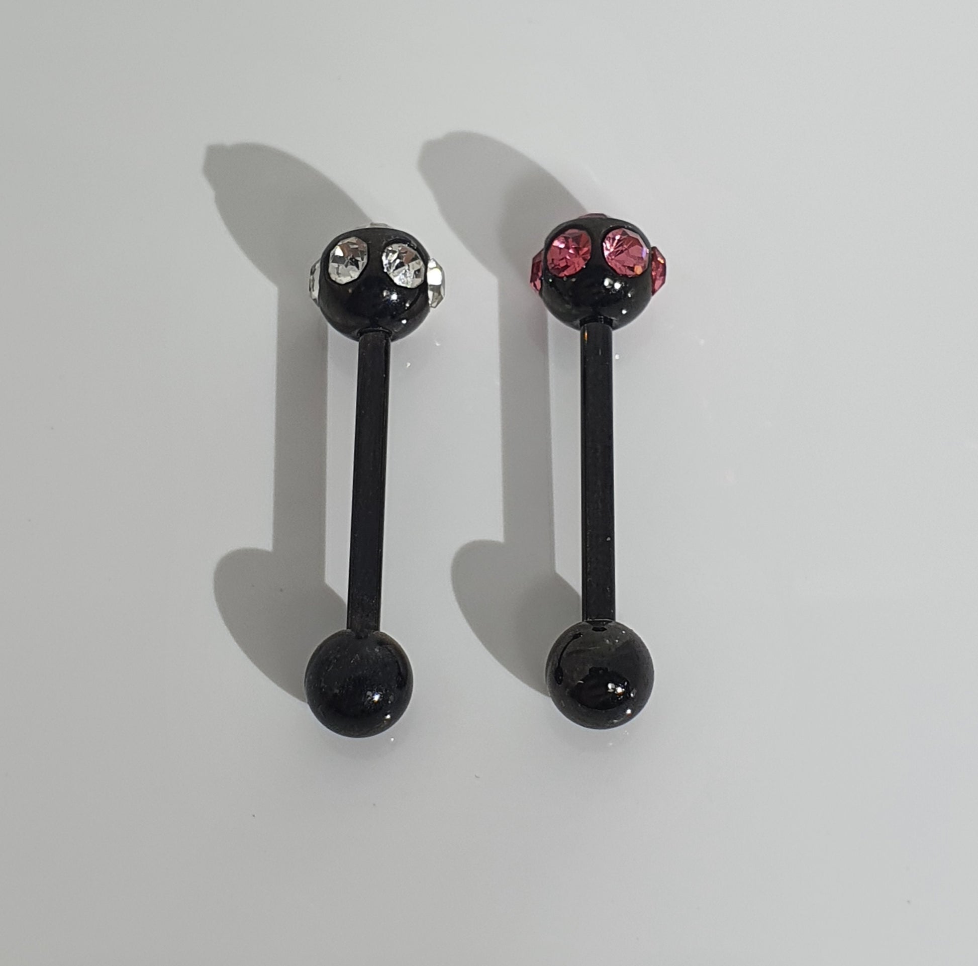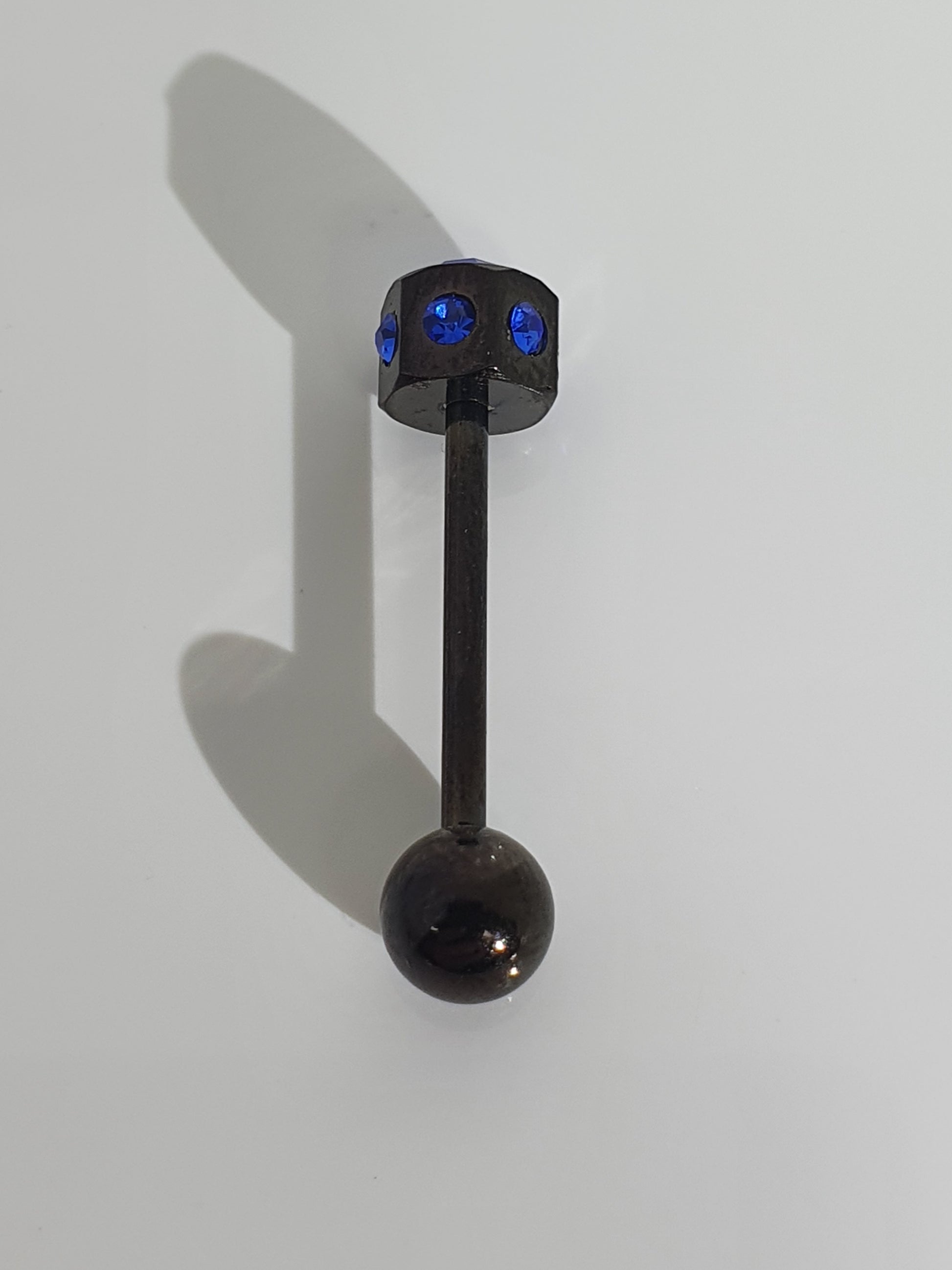Black PVD Jewelled Tongue Barbell 1.6mm(14g) x 16mm