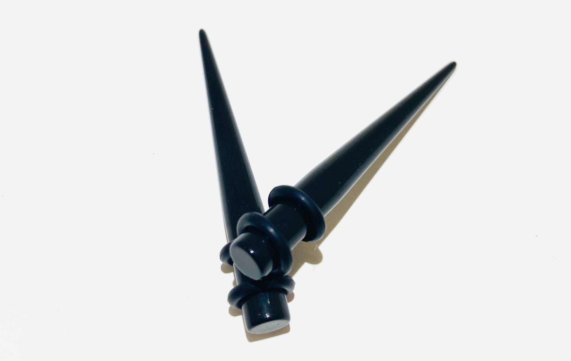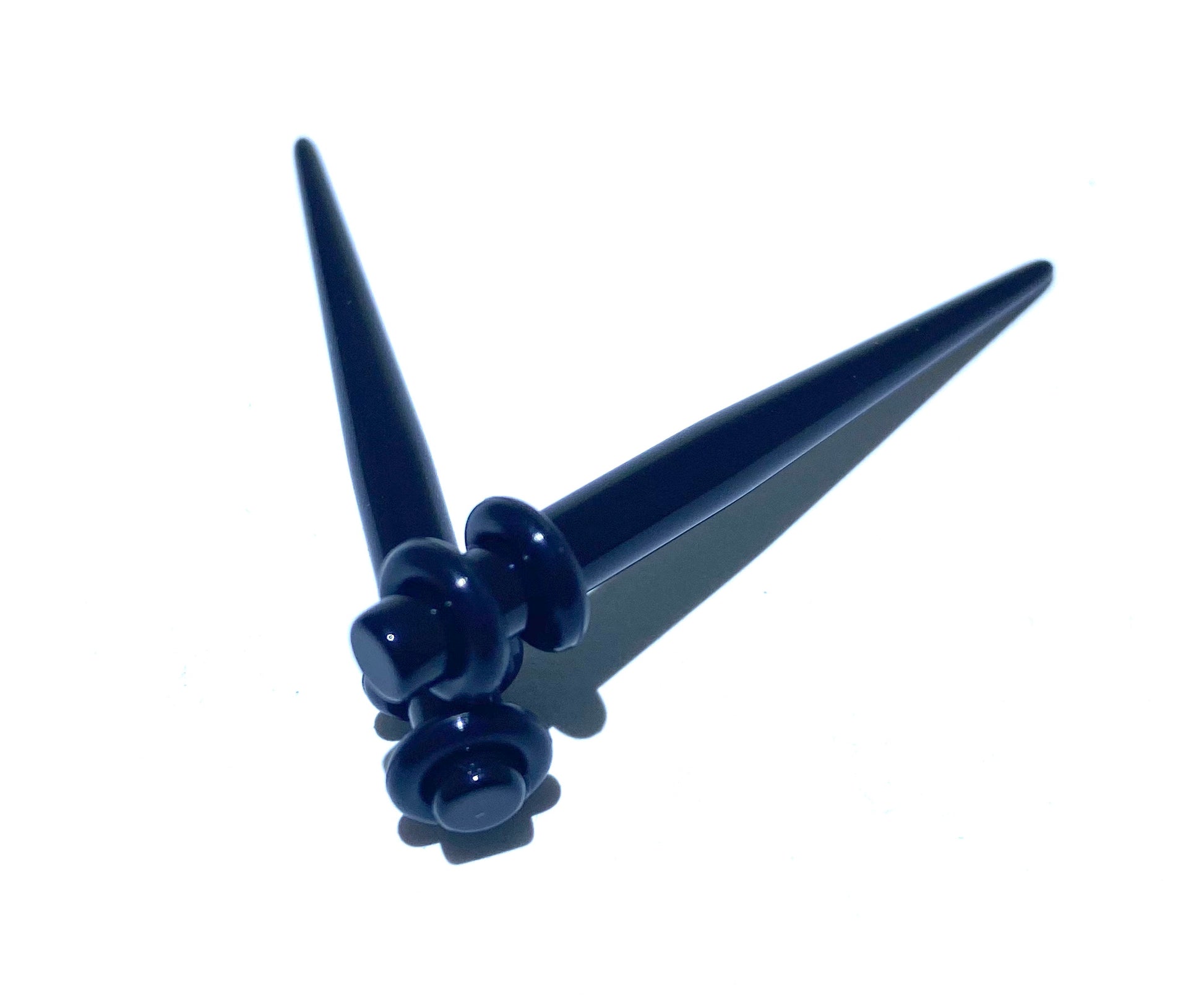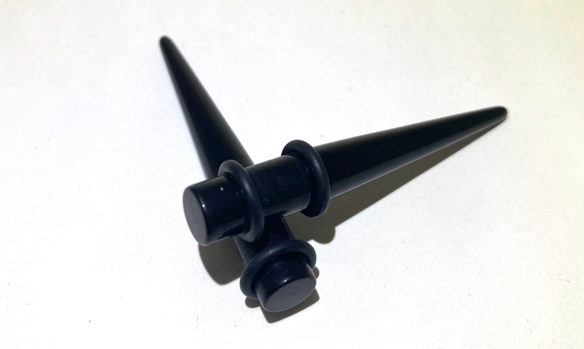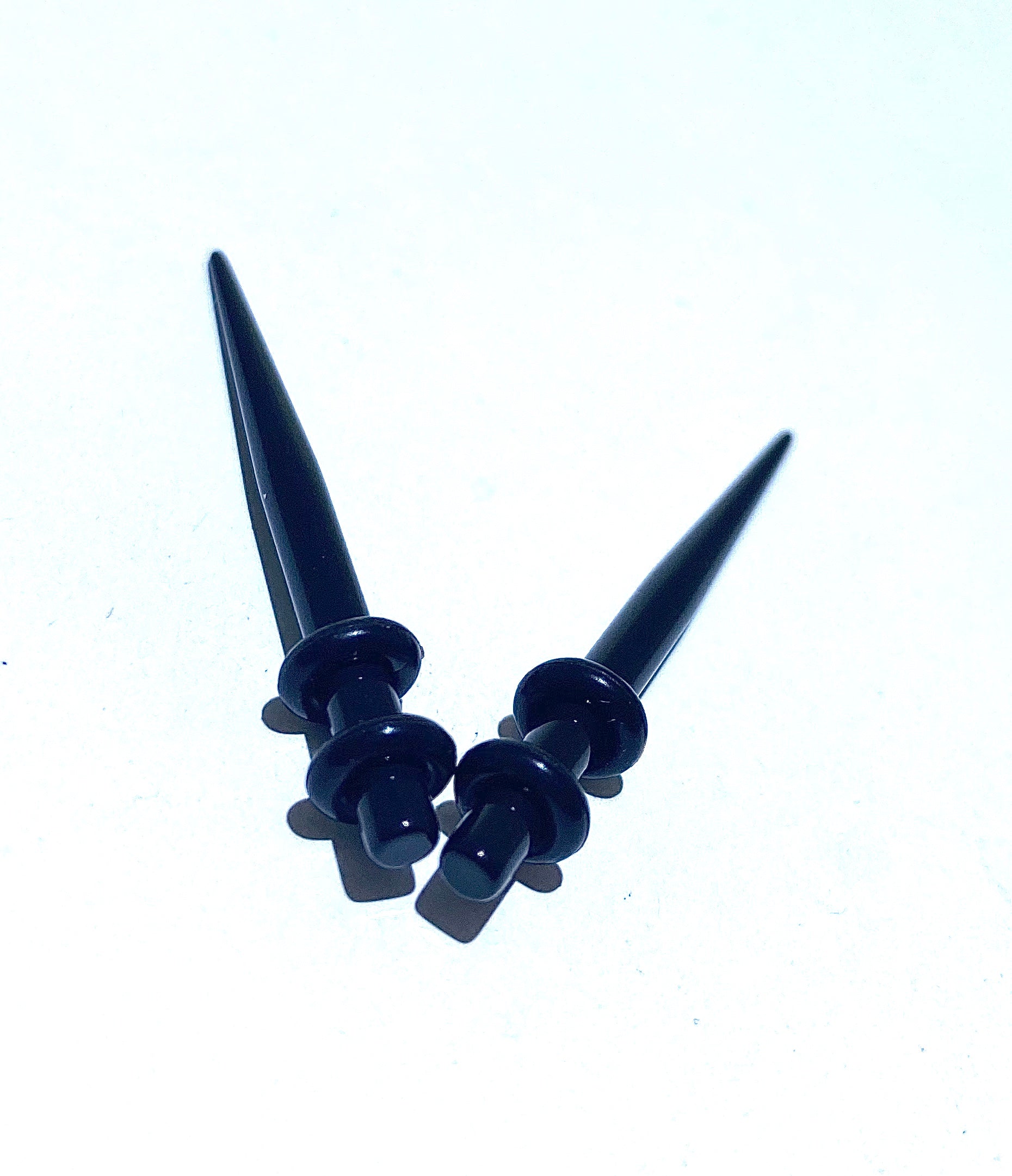 These acrylic Black Tapers are great for stretching lobes - not intended for long term continual wear. Acrylic is biocompatible and safe for most people, however like anything some people can have reactions. When stretching you need to be gentle and careful to prevent tearing of the tissue.
