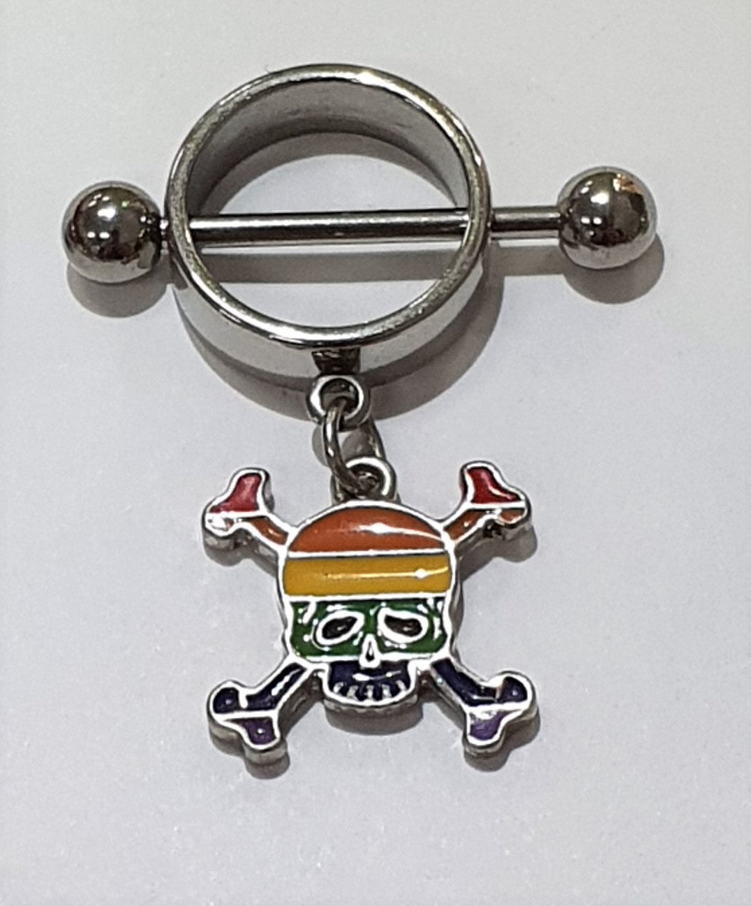 Circle Nipple Shield with Rainbow Skull & Crossbone.