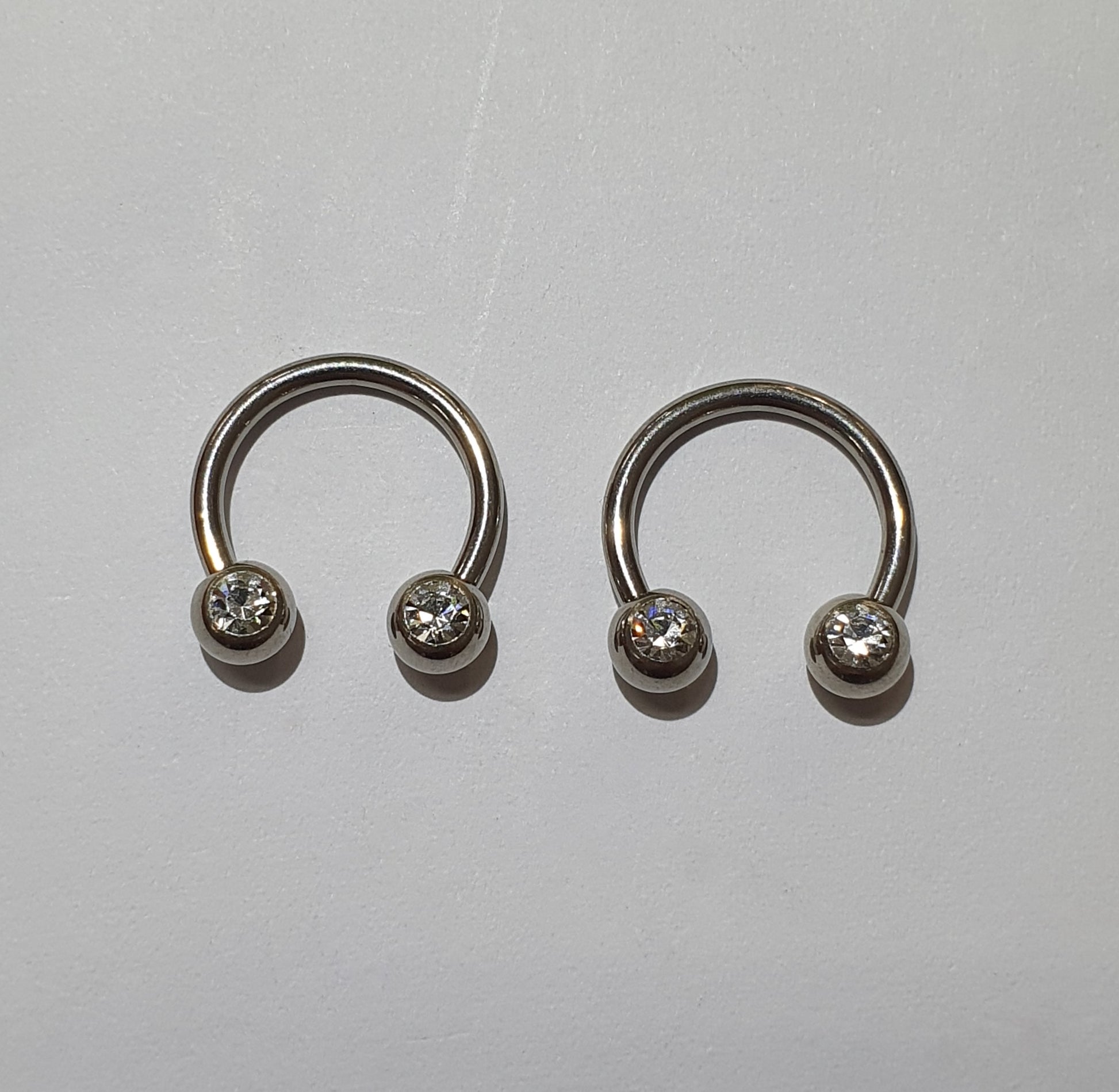 5mm crystal balls, 1.6x12mm surgical circular barbell.