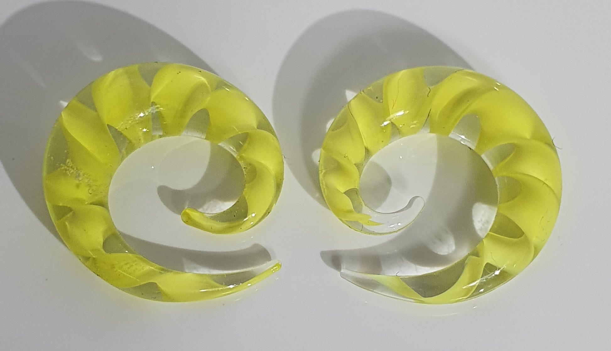 We recommend not inserting and removing these styles of jewellery over hard surfaces such as tiles. These items are fragile. This jewellery material can chip or crack if dropped. Avoid chemicals and solvents on organic items. A mild soap and damp lint free cloth is recommended for regular cleaning.
