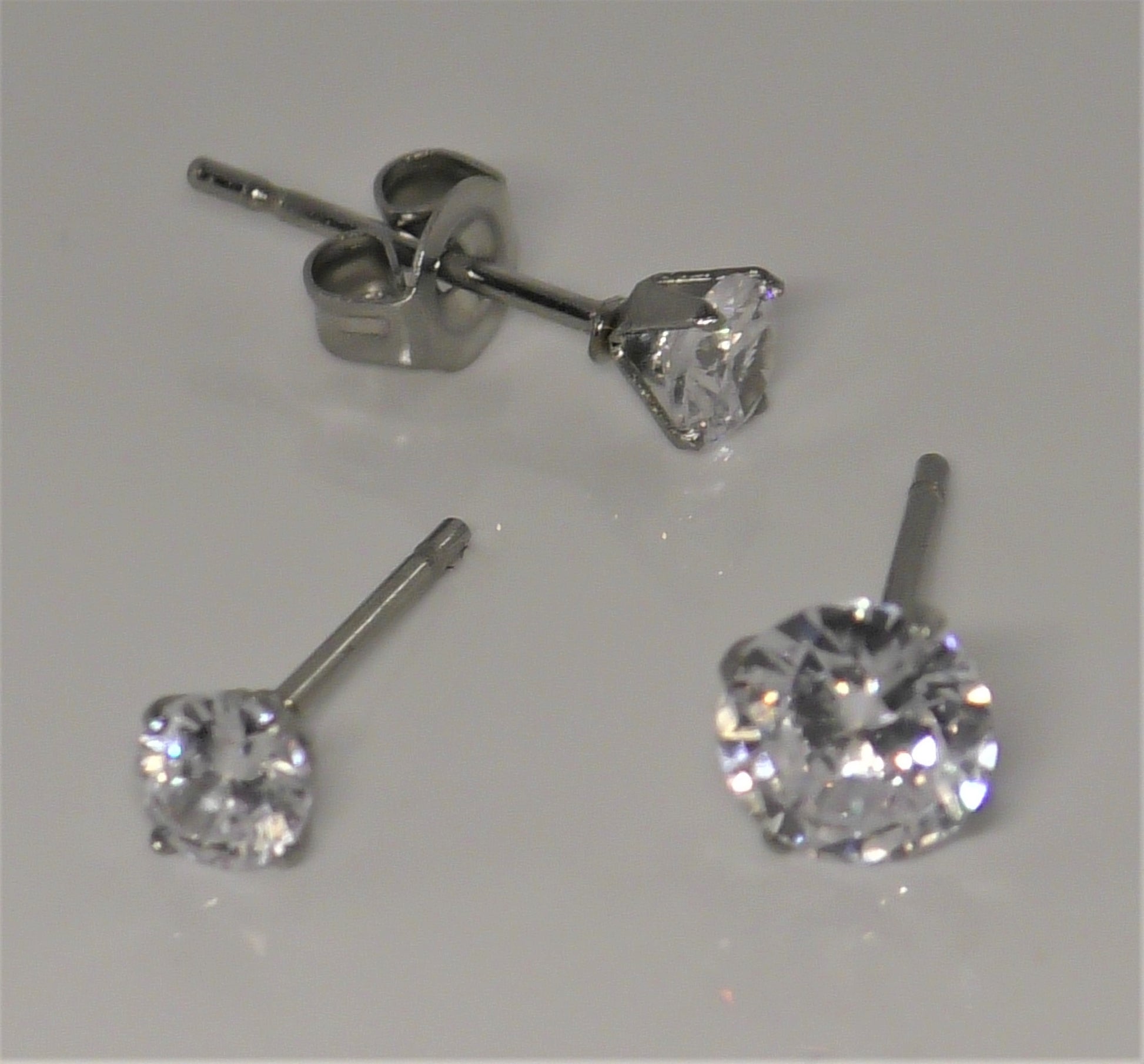Two sizes: 4mm & 6mm cubic zirconia in surgical steel claw setting.
