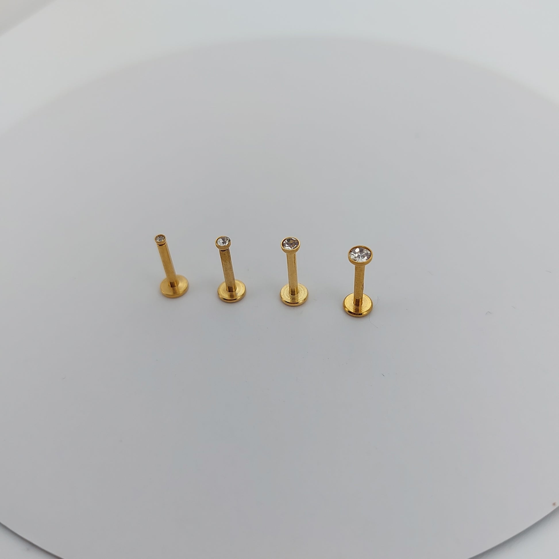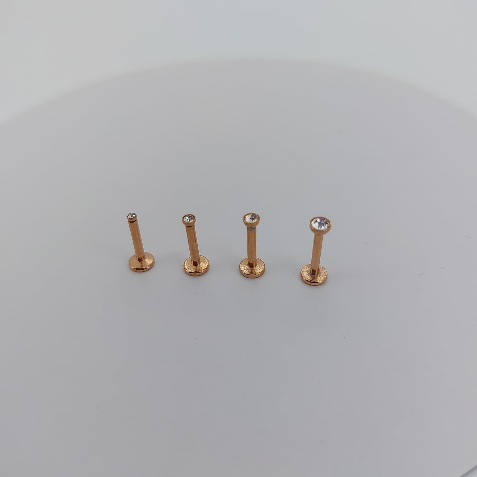 PVD Plated Internally threaded crystal Labrets 1.2mm(16g) - gold & rose gold