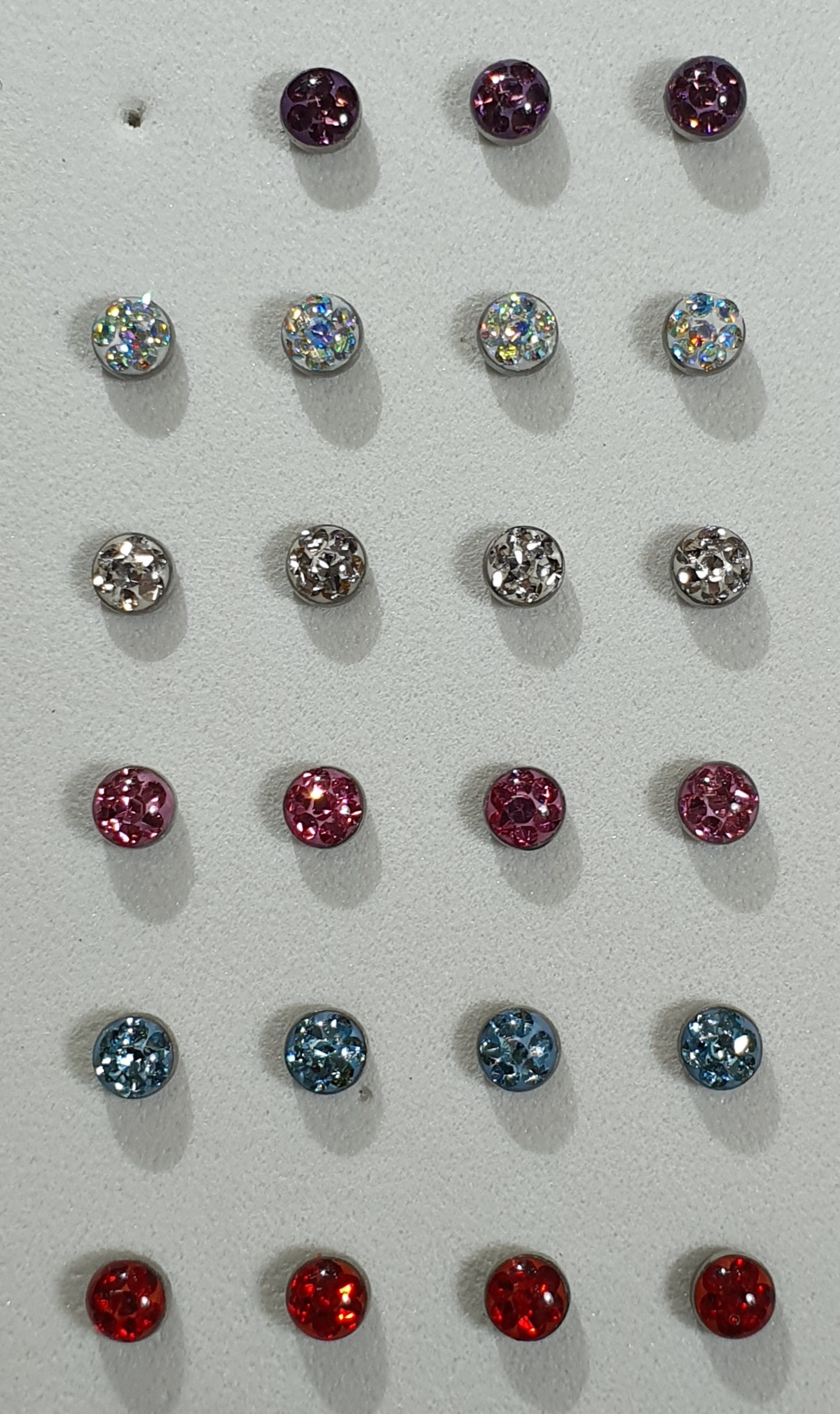 Assorted colours: Amethyst (purple), Crystal, Crystal AB (aurora borealis), Rose (pink), Aquamarine (blue) & Siam (red).