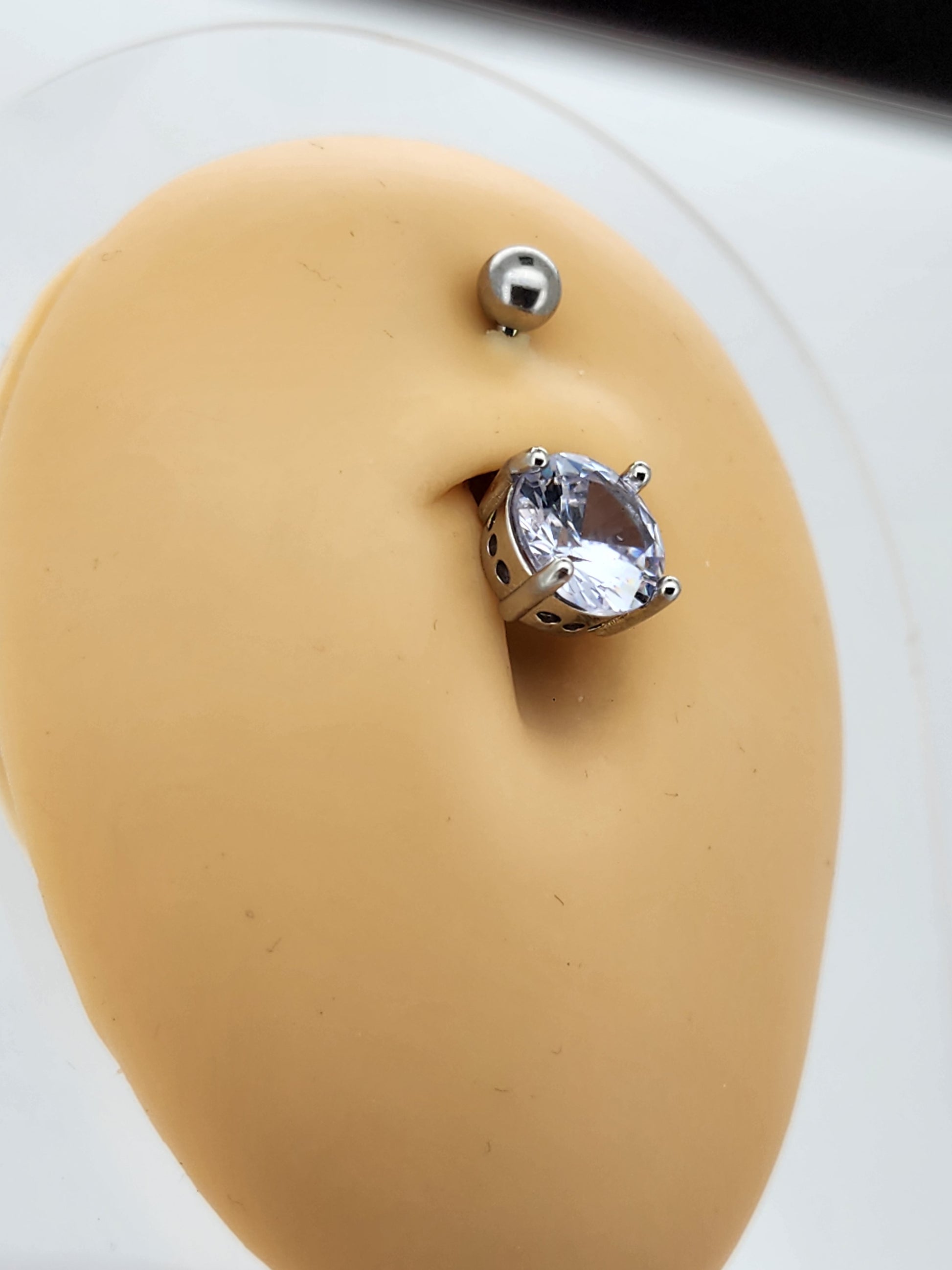 This gorgeous piece is ideal for navel piercing, with a large crystal it’s best suited to a larger navel. The large jewel is set in a claw setting. Externally threaded with a plain ball on top.