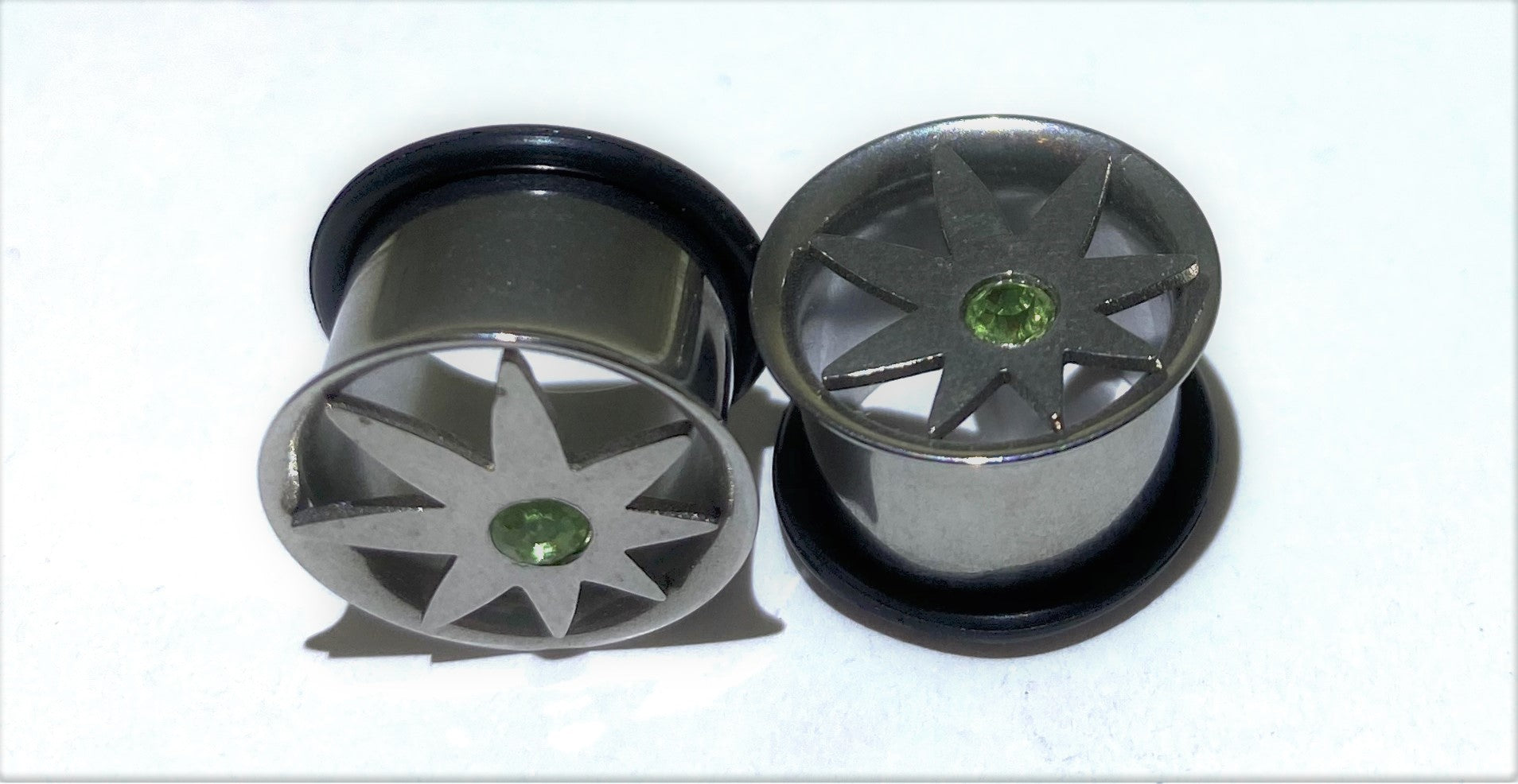 Surgical Stainless Steel Tunnel with laser cut leaf with peridot set gem