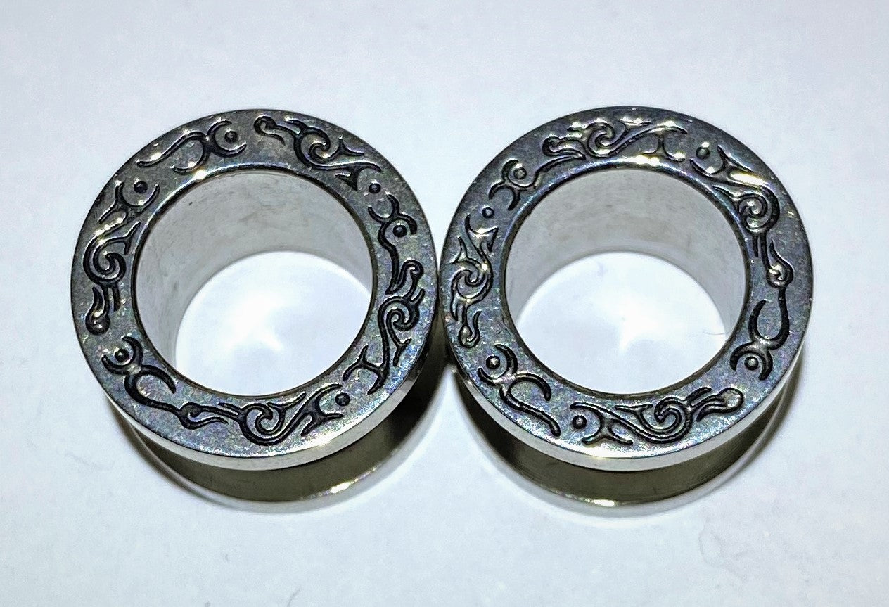 Surgical Steel Etched Threaded Tunnel (Design 2)