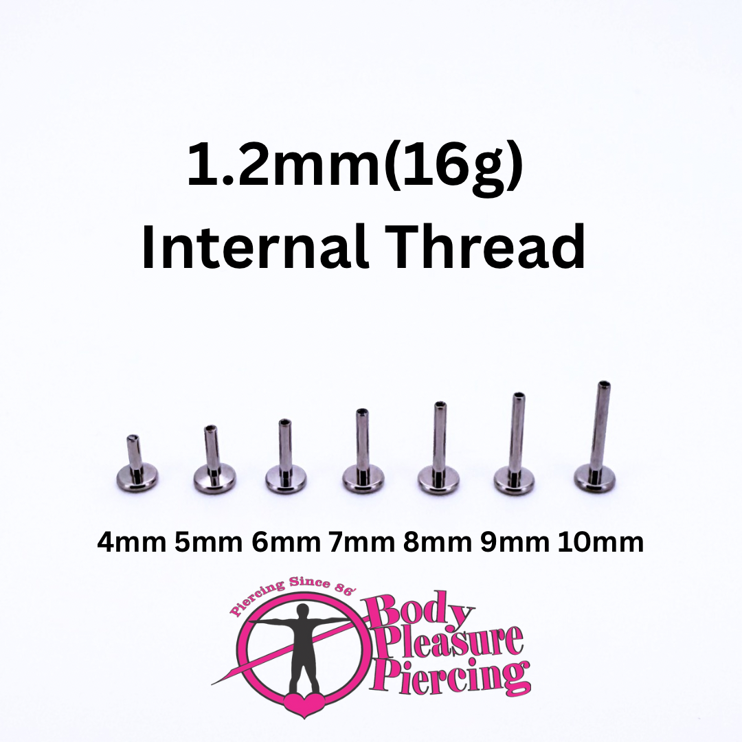 These 1.2mm(16g) Ti Internal Thread Studs are crafted with flat backs for maximum comfort. Made of hypoallergenic titanium, they are suitable for all skin types. Available in various lengths, these studs can also be used for downsizing. These studs make changing up your style easy, designed to fit 1.2mm m(16g) internally threaded tops. Mix and match for endless options.Upgrade your piercing game with these versatile and skin-friendly studs.