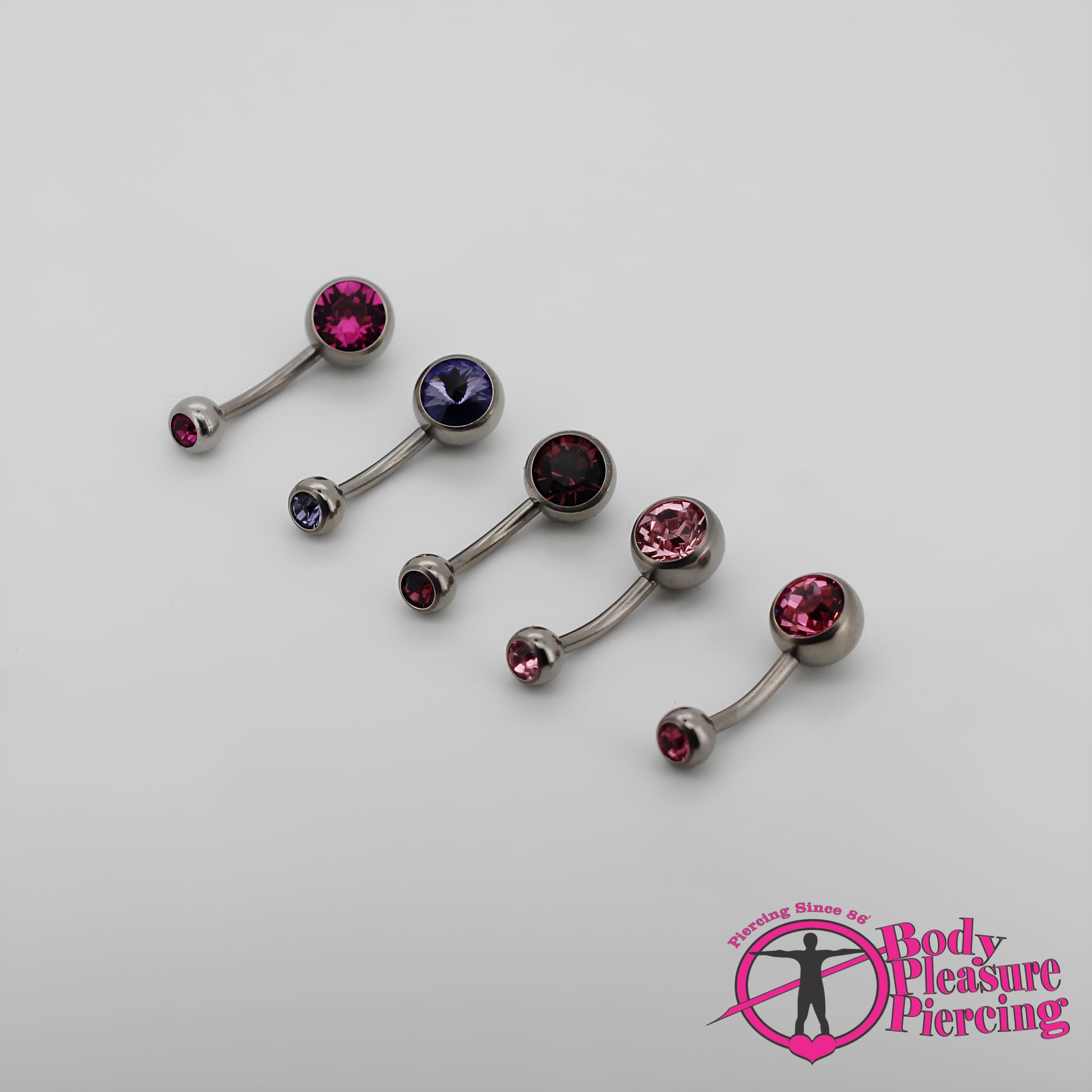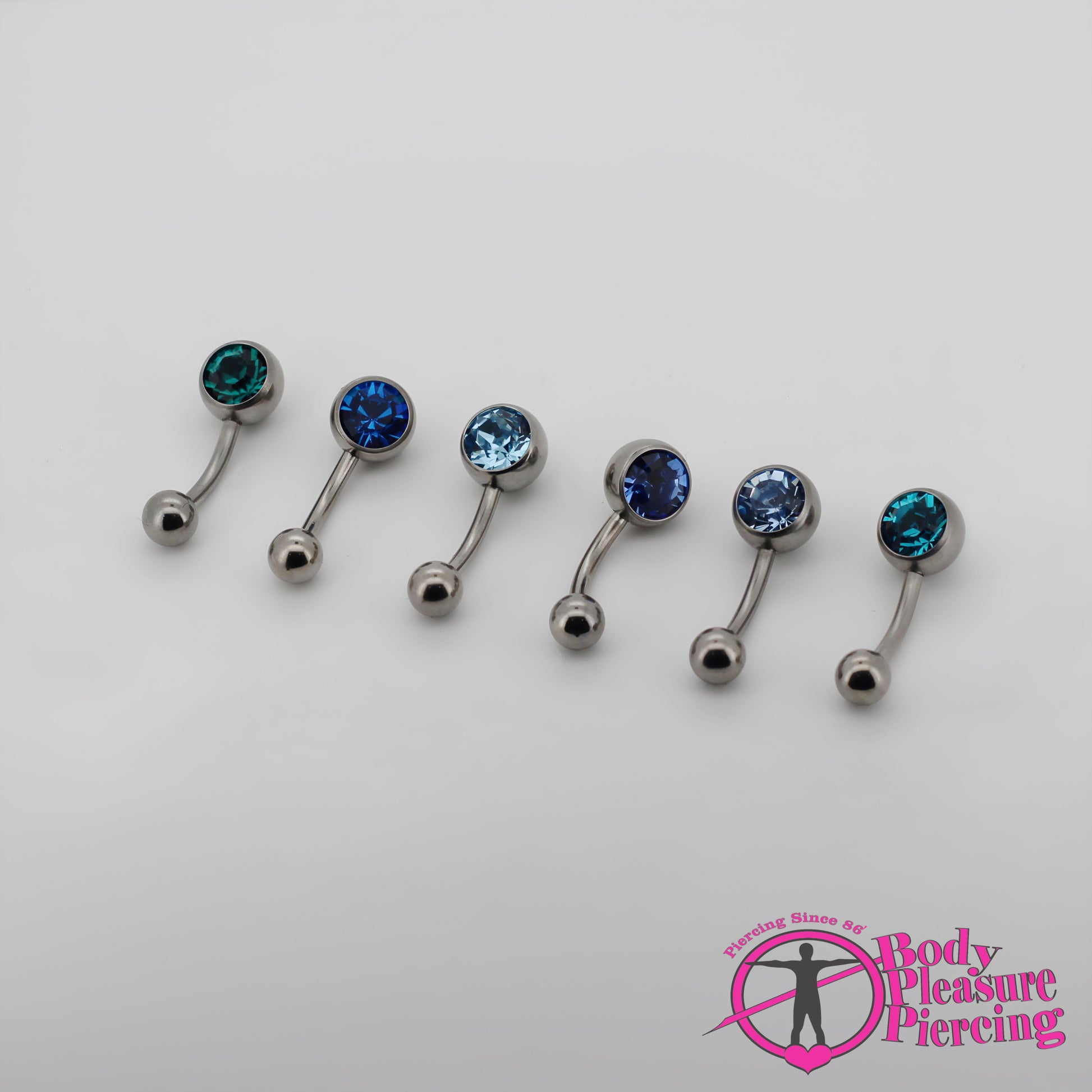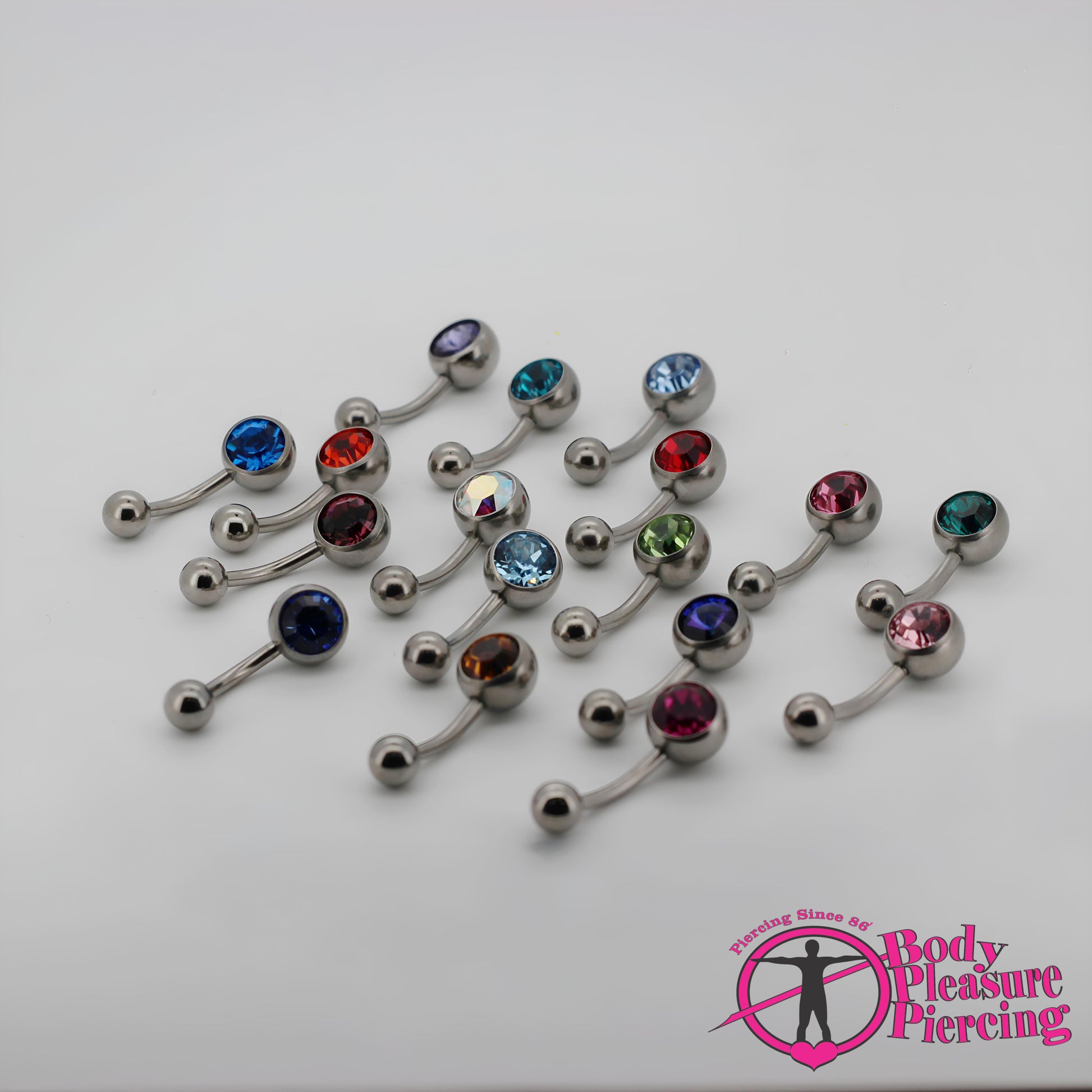 Titanium Jewelled Navel Stud 1.6mm(14g) x 10mm. External thread. These are the standard length required for most navel piercings.