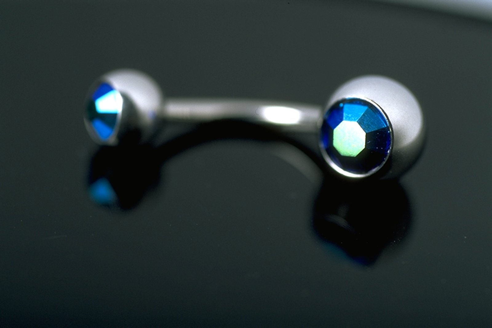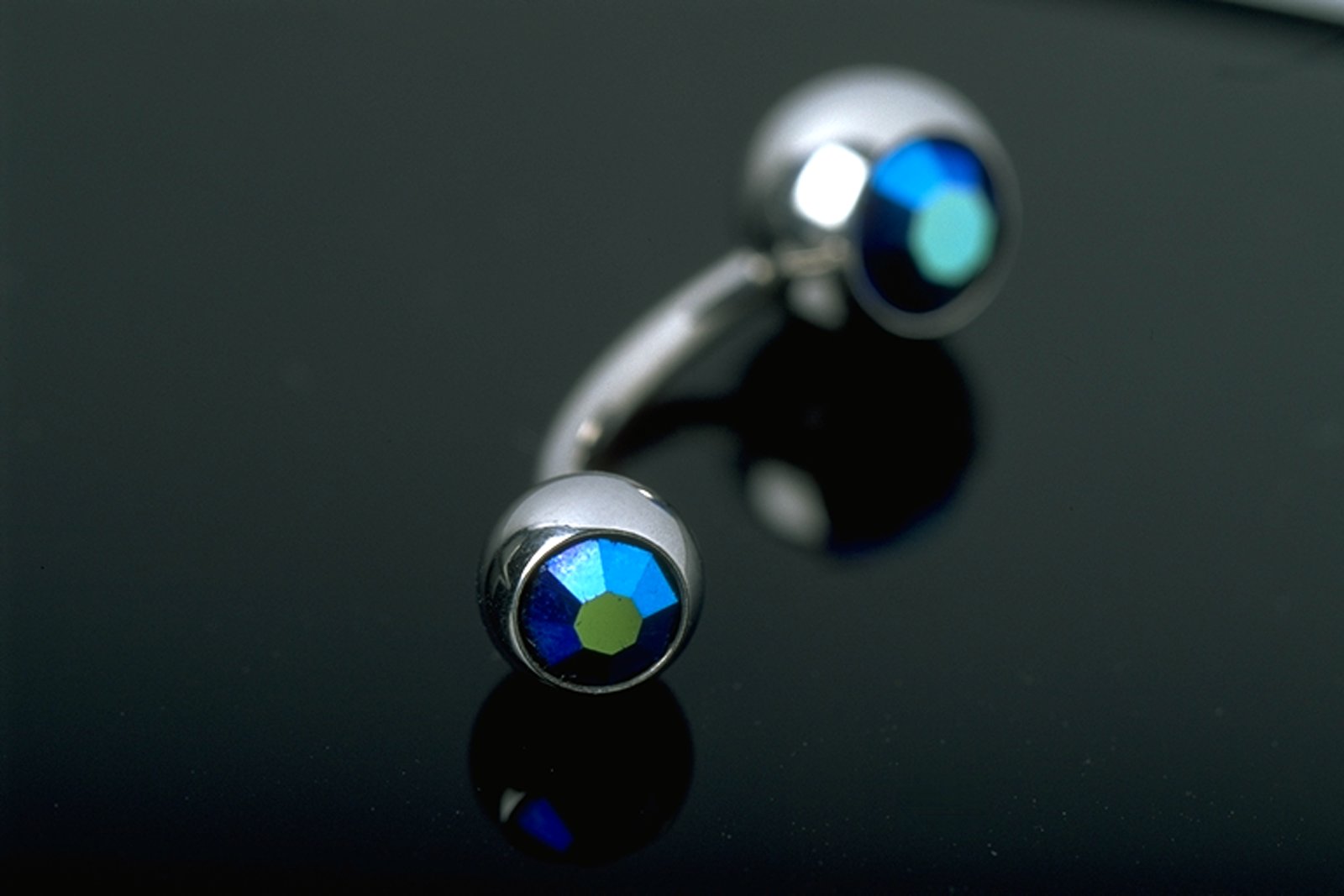 Available in different colours - Amethyst (purple), Aquamarine (sky blue), Black Diamond, Blue Zircon (teal), Capri (ocean blue), Crystal, Crystal AB (aurora borealis), Emerald (dark green), Fuchsia (hot pink), Heliotrope (purple/blue), Hyacinth (orange), Jet Black, Light Amethyst (light purple), Light Rose (light pink), Light Sapphire (light blue), Lt Siam (red), Light Vitrail (violet/light blue), Peridot (light green), Plain (no jewel), Rose (pink), Sapphire (dark blue), Siam (dark red), Taz (violet), Topaz (yellow), Blue Eyeball, Yellow Eyeball, 8 Ball, 69 & YingYang