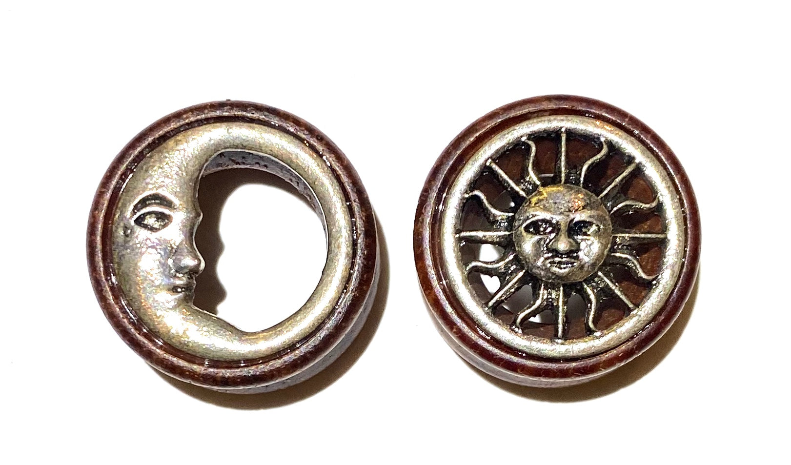 Wooden Silver Moon and Sun Plug (Flared)