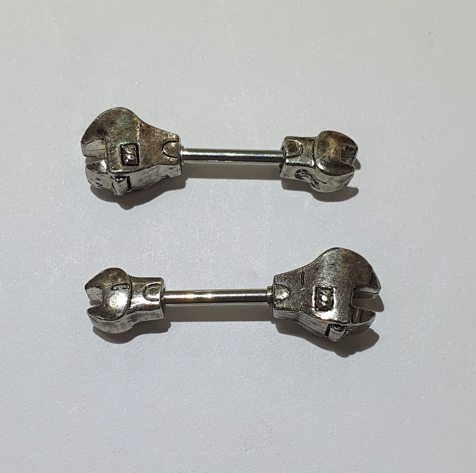 Wrench Barbell. 1.6mm(14g)x10mm, surgical steel barbell.